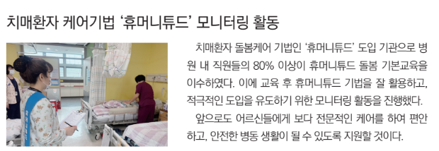 [10월 소식] 치매환자 케어기법 '휴머니튜드' 모니터링 활동
