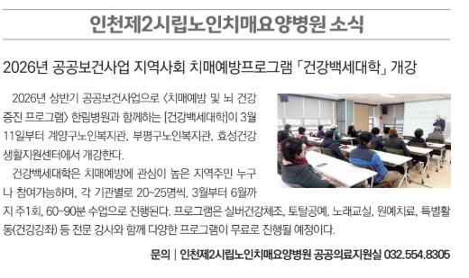 [4월 소식] 2026년 공공보건사업 지역사회 치매예방프로그램 '건강백세대학' 개강
