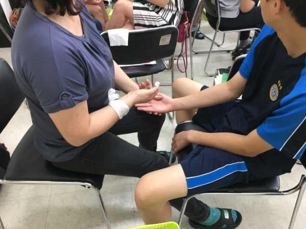 2016~2017년 활동 예정인 제7기 대인고등학교 손마사지 가족봉사단의 활동 지원을 위해 지난 7월 22일(금) 14:00~16:00 본원 B1층 프로그램실에서 자원봉사 교육 및 오리엔테이션을 진행하였습니다.