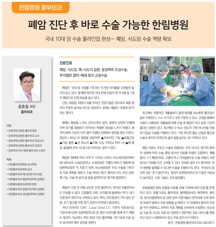 [9월] 폐암 진단 후 바로 수술 가능한 한림병원 흉부외과 |
