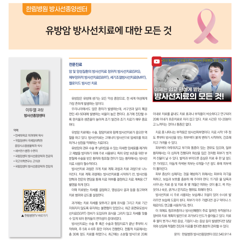 [10월] 유방암 방사선치료에 대한 모든 것-한림병원 방사선종양센터 |